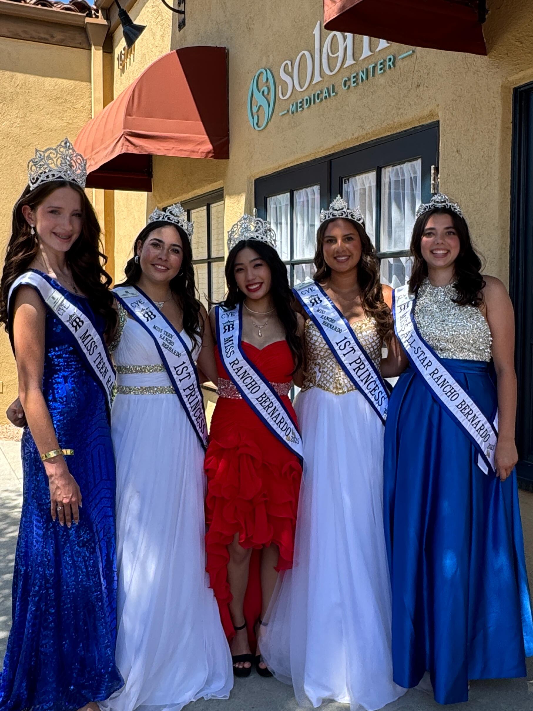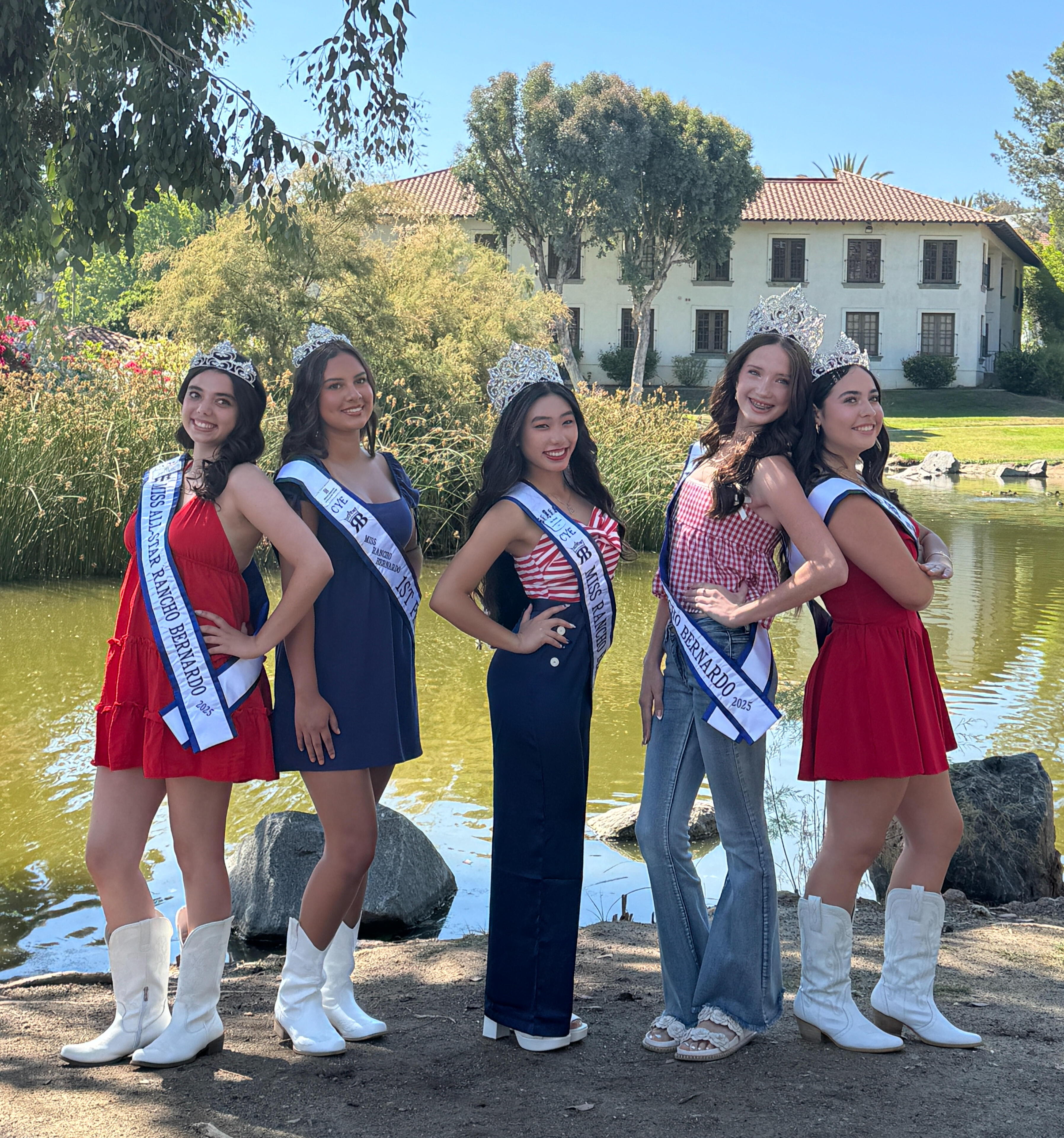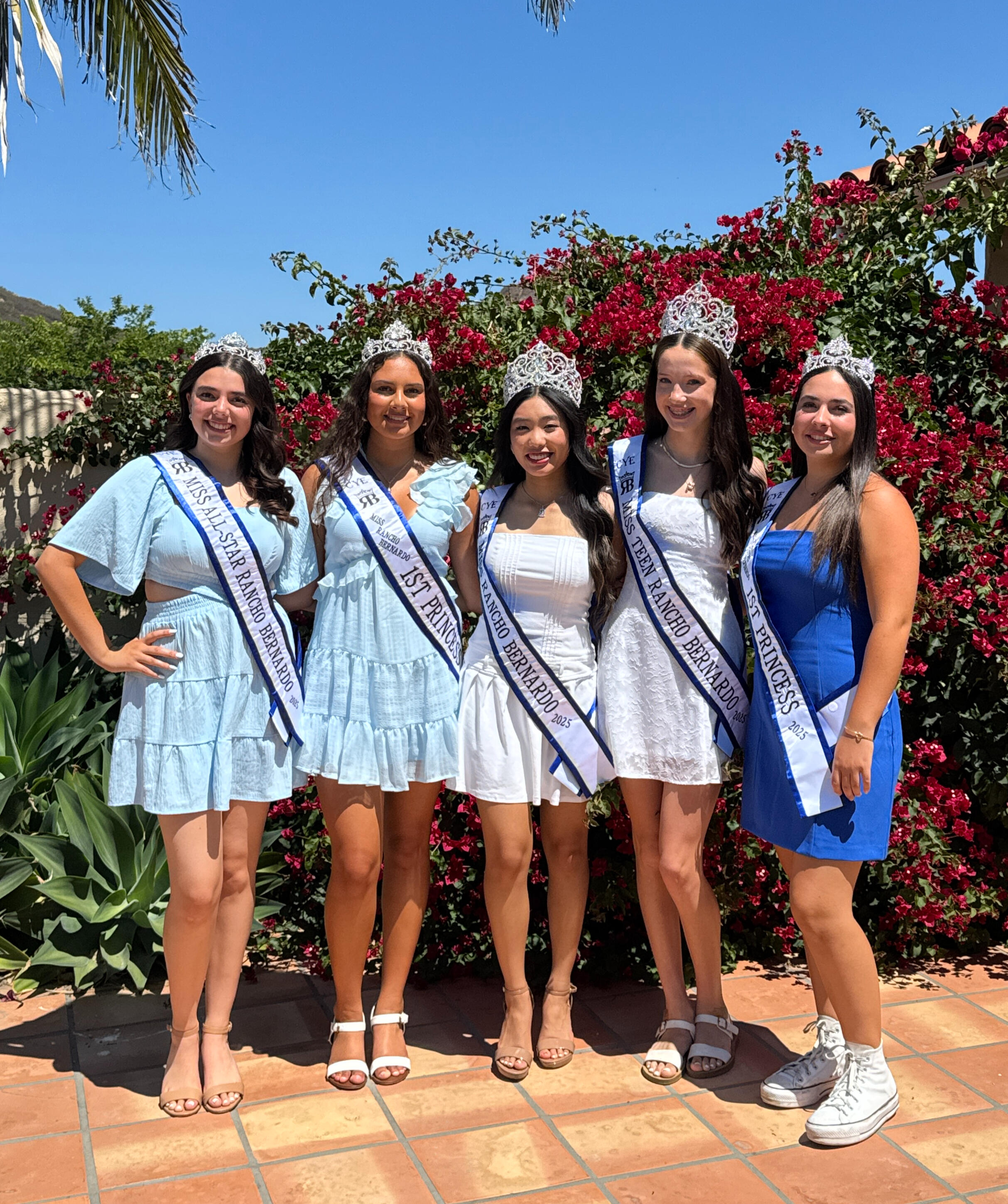 Our 2025 Miss Rancho Bernardo CYE Court : Miss Rancho Bernardo - Ava Wang, Miss Rancho Bernardo Princess- Bibiana Deguzeman, Miss Teen Rancho Bernardo - Felicia French, Miss Teen Rancho Bernardo- Jovanna Windsor, and All Star Miss Rancho Bernardo and Junior Director- Ysabel DiProfio